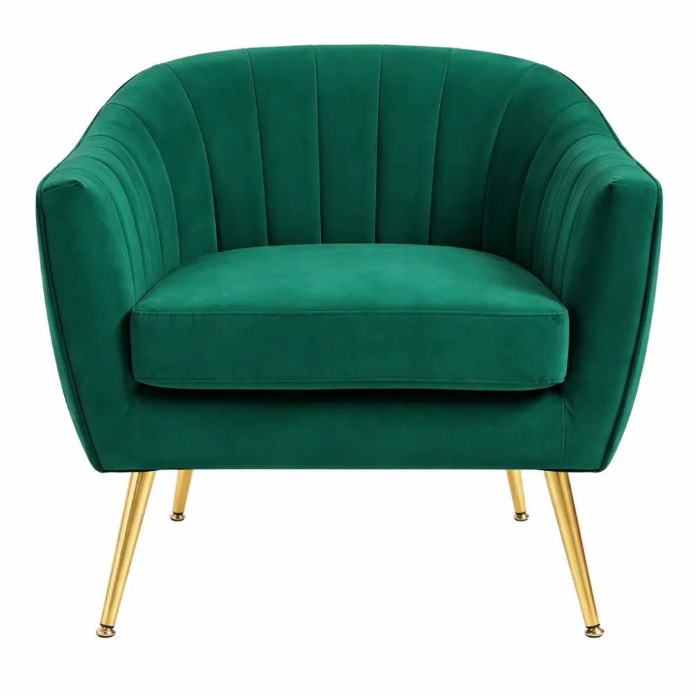 Poltrona Imbottita con Braccioli e Schienale, Design Moderno, Gambe in Metallo, Verde