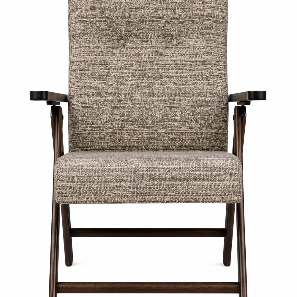 Poltrona sdraio in legno, schienale reclinabile in 4 posizioni, rivestita in tessuto. Adatta per ambienti della casa.