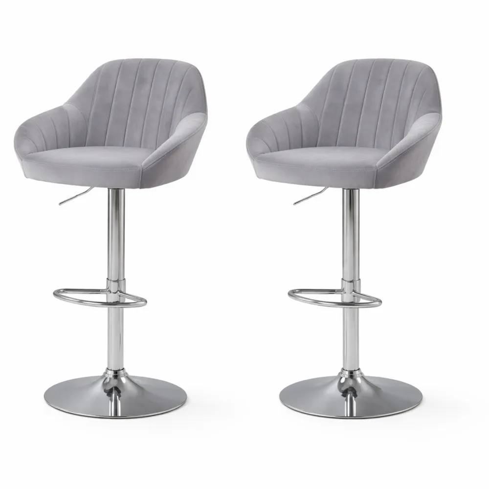 Questi sgabelli da cucina hanno una superficie di seduta in velluto, adatta anche per le pelli sensibili. Sono riempiti con schiuma ad alta densità. La morbida imbottitura si adatta al corpo. Questi sgabelli regolabili in altezza hanno braccioli ergonomici e un design pulito. Sono adatti per isole cucina o bar. Progettati in uno stile moderno minimalista, questi sgabelli si integrano facilmente in vari stili di arredamento. Gli sgabelli alti offrono una rotazione a 360 gradi, permettendo di adattare la seduta a diversi scenari d'uso. Il meccanismo di rotazione è semplice da usare.